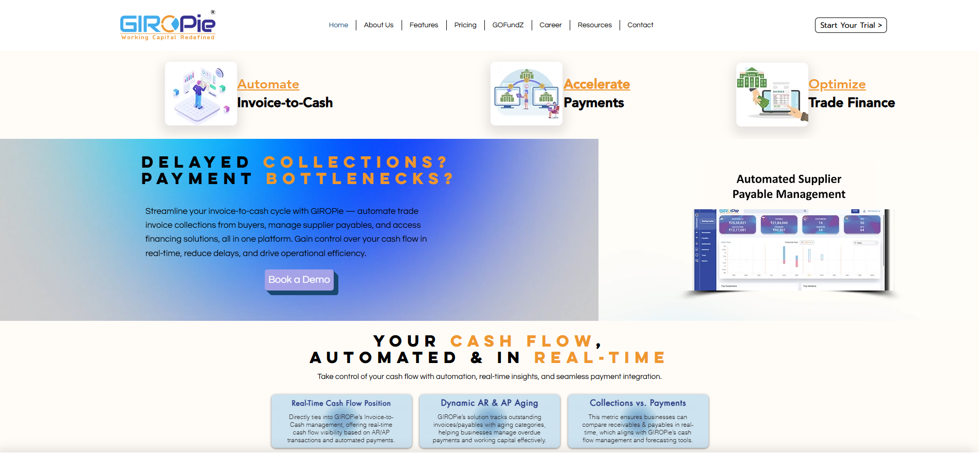 We developed a robust and scalable platform for Giropie to streamline the invoice-to-cash cycle for businesses — automating trade invoice collections, managing supplier payables, and offering access to financing solutions.